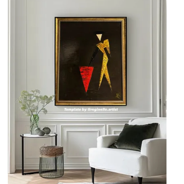 Natural 50x60 Acrílico sobre lienzo.En esta obra exploré la figura humana a través de formas geométricas con acrílico y laca, buscando expresar la fuerza y simplicidad del ser. Quise transmitir un momento de interacción cargado de energía y misterio, donde cada línea y color generan un contraste que invita a la reflexión. Esta pieza llenará tu espacio con una vibra poderosa y contemporánea que estimula la imaginación.